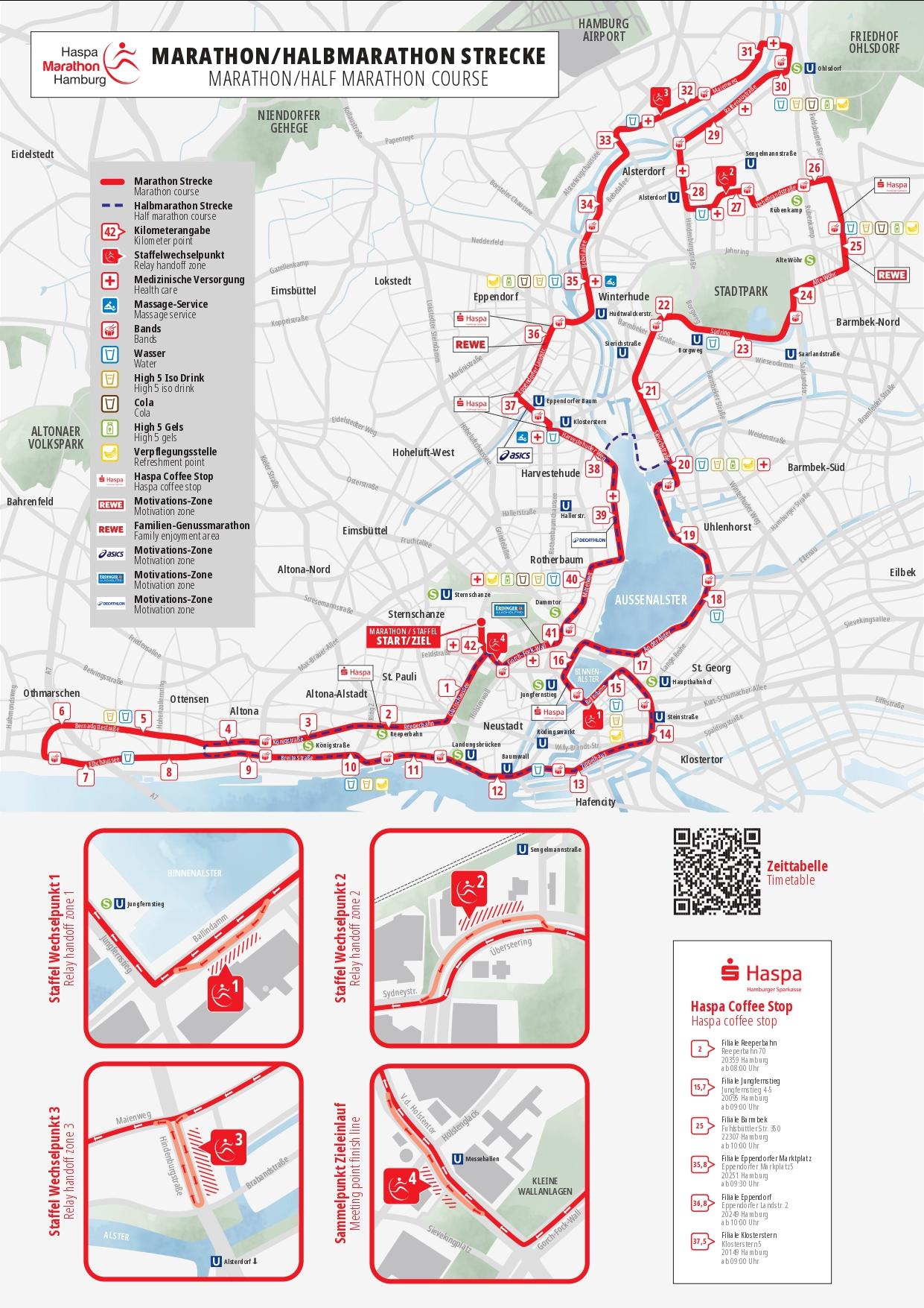 The course of the Hamburg Marathon is generally flat. Below is the coursemap.